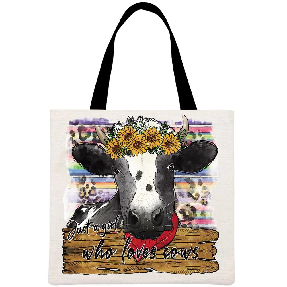 Just a Girl Who Loves Cows Printed Linen Bag