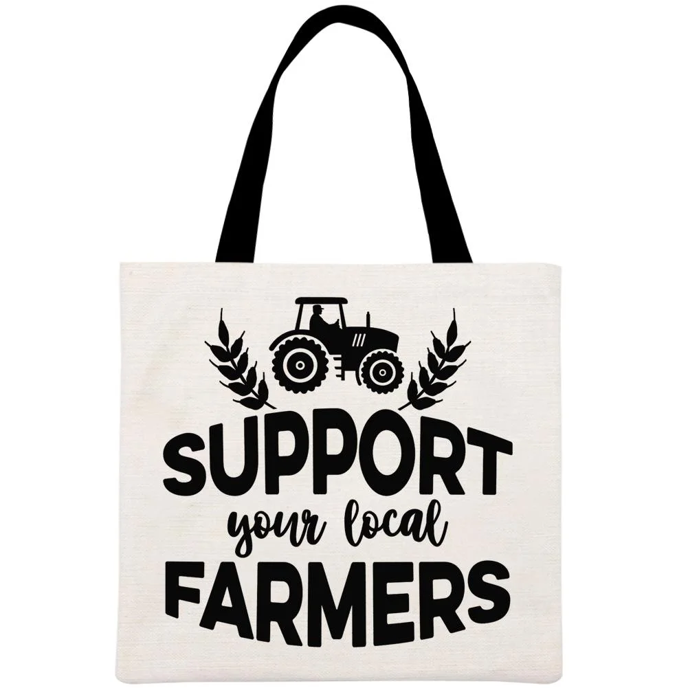 Support Your Local Farm Retro Printed Linen Bag